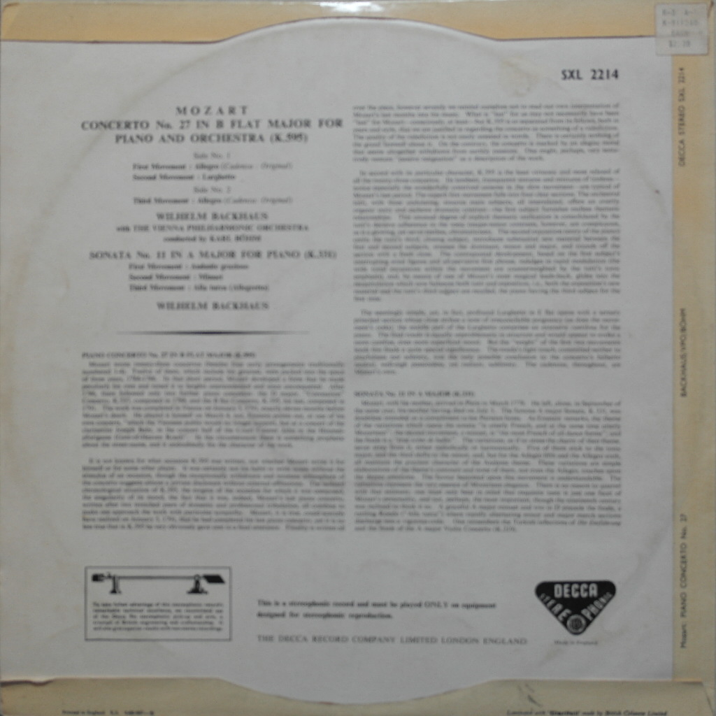 * Label / No (음반사 / 음반번호) : Decca / SXL 2214