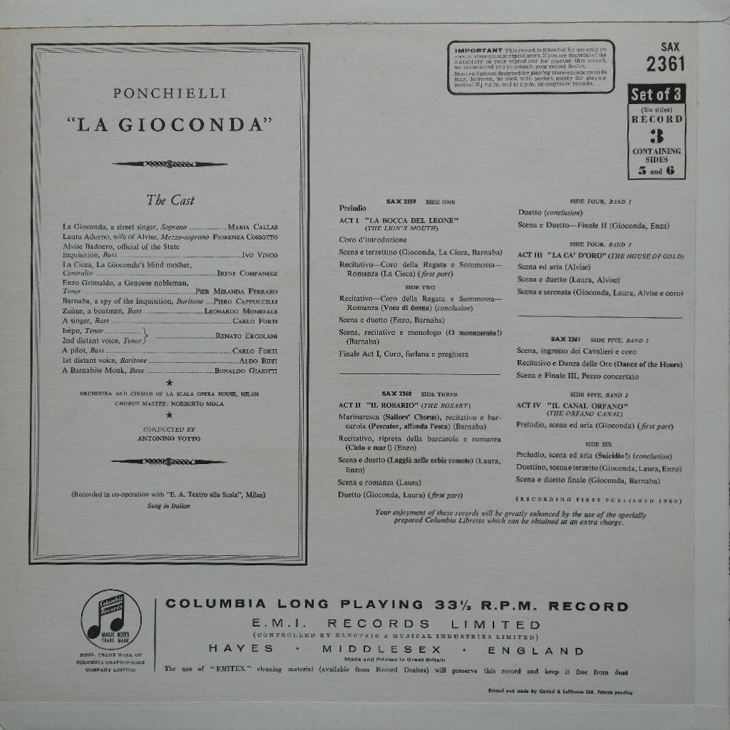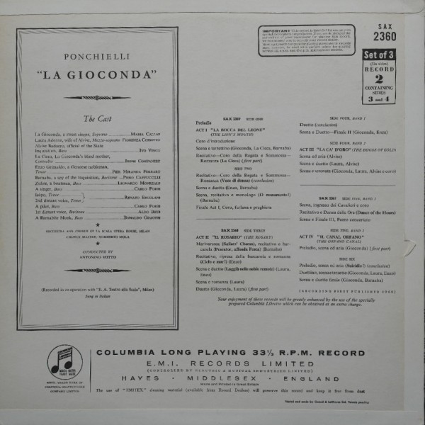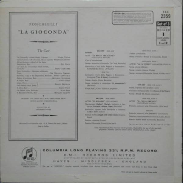 Ponchielli : La Gioconda (Complete, 3 separate records)