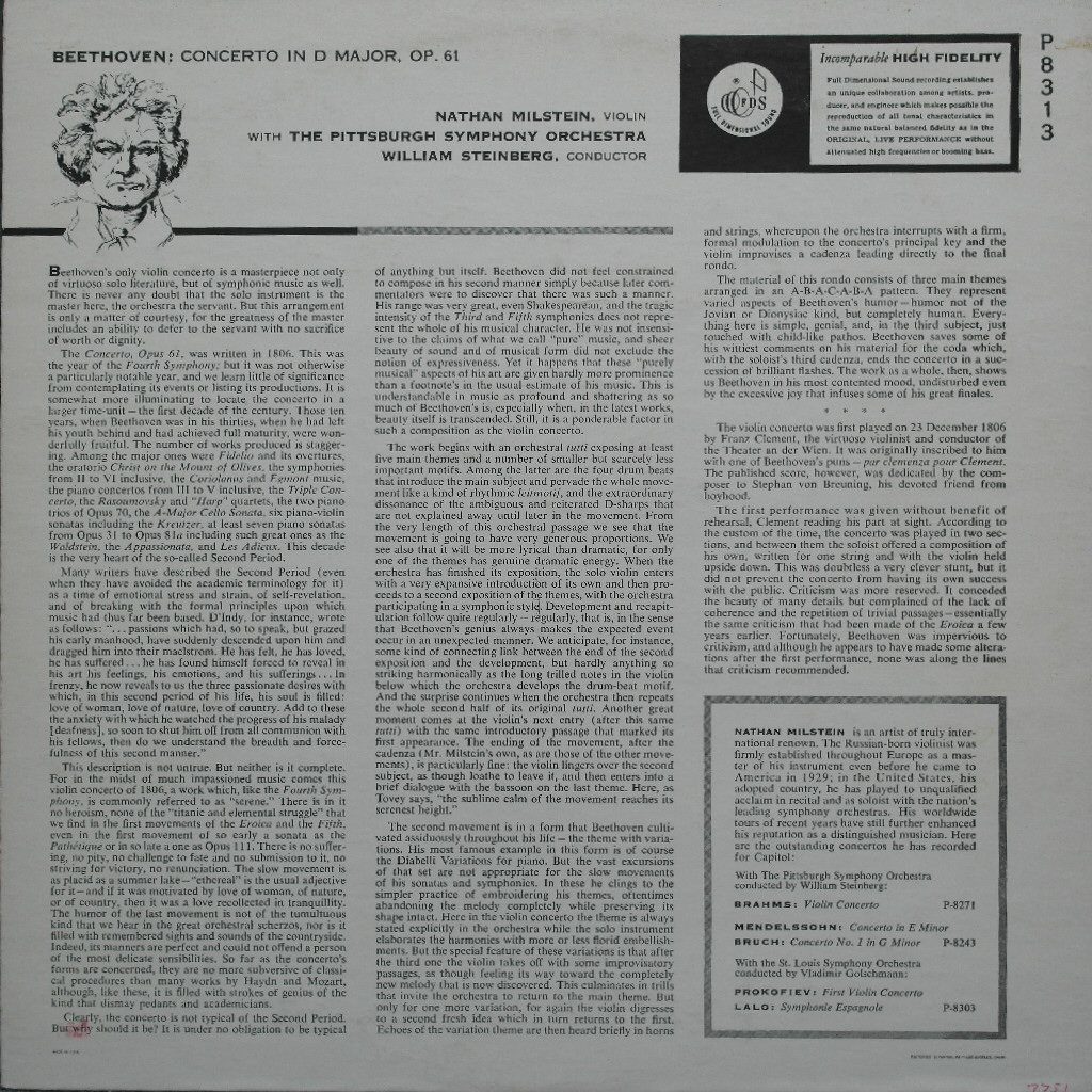 * Performer (연주가) : N. Milstein, W. Steinberg, Pittsburgh Sym.