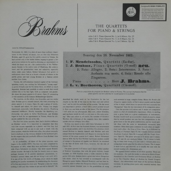Brahms : Piano Quartet No.1 in G minor, Op.25 / No.2 in A, Op.26 / No.3 in C minor, Op.60