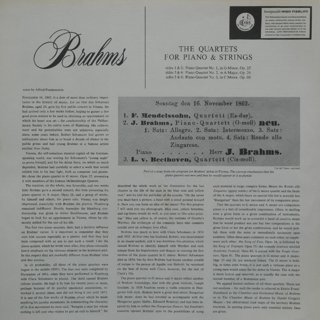 Brahms : Piano Quartet No.1 in G minor, Op.25 / No.2 in A, Op.26 / No.3 in C minor, Op.60