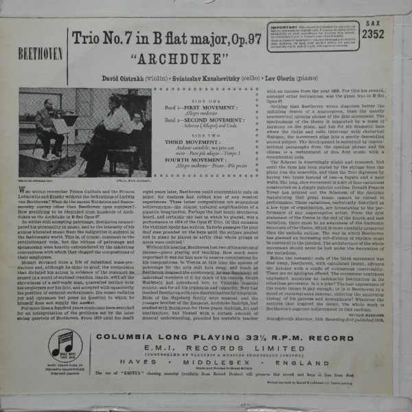 카테고리: Chamber music (실내악곡), Columbia, Oistrakh, U.K. (영국).* Serial No (상품번호) : COL 1700