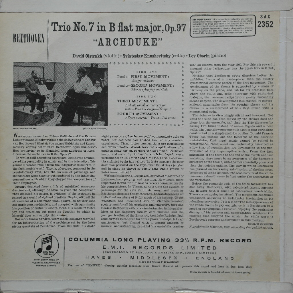 카테고리: Chamber music (실내악곡), Columbia, Oistrakh, U.K. (영국).* Serial No (상품번호) : COL 1700