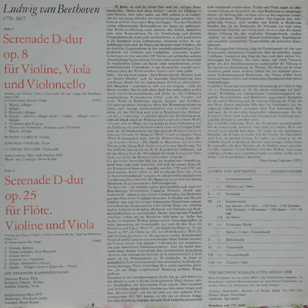 Beethoven : Serenade for String Trio, Op.8 / Serenade for Flute, Violin & Viola, Op.25