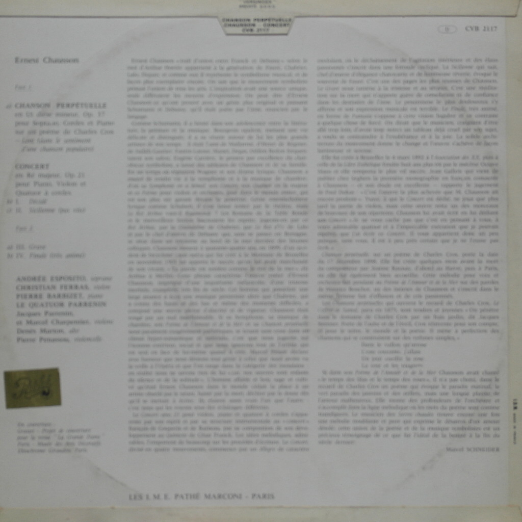 Chausson : Chanson Perpetuelle (영원한 노래), Op.37 / Concert for Piano, Violin & String Quartet, Op.21