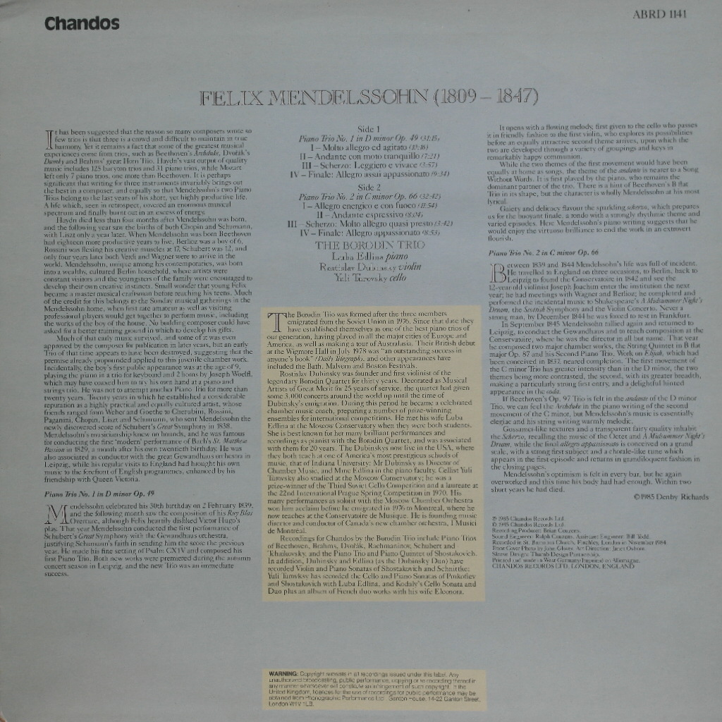 * Label / No (음반사 / 음반번호) : Chandos / ABRD 1141