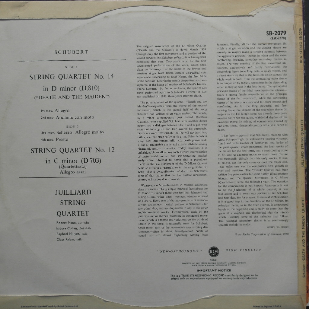 * Performer (연주가) : Juilliard Quartet