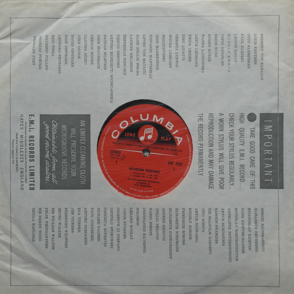 * Label / No (음반사 / 음반번호) : Columbia / SAX 2542