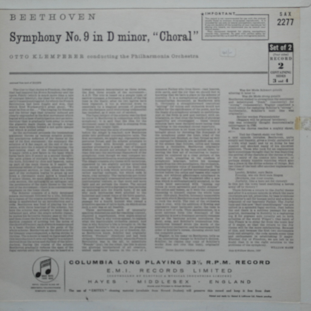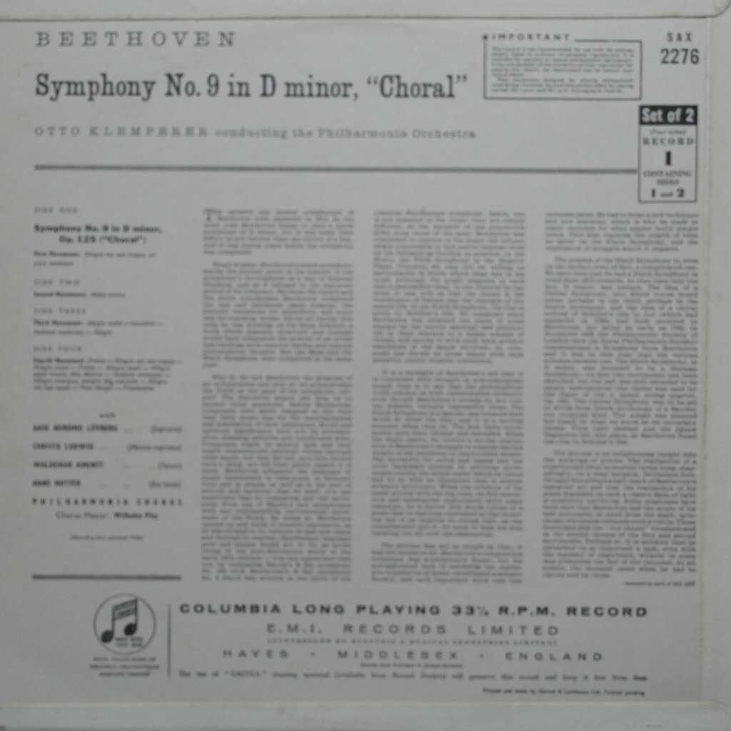 카테고리: Columbia, Klemperer, Symphony / Orchestral music (교향곡 / 관현악곡), U.K. (영국).* Serial No (상품번호) : COL 1605