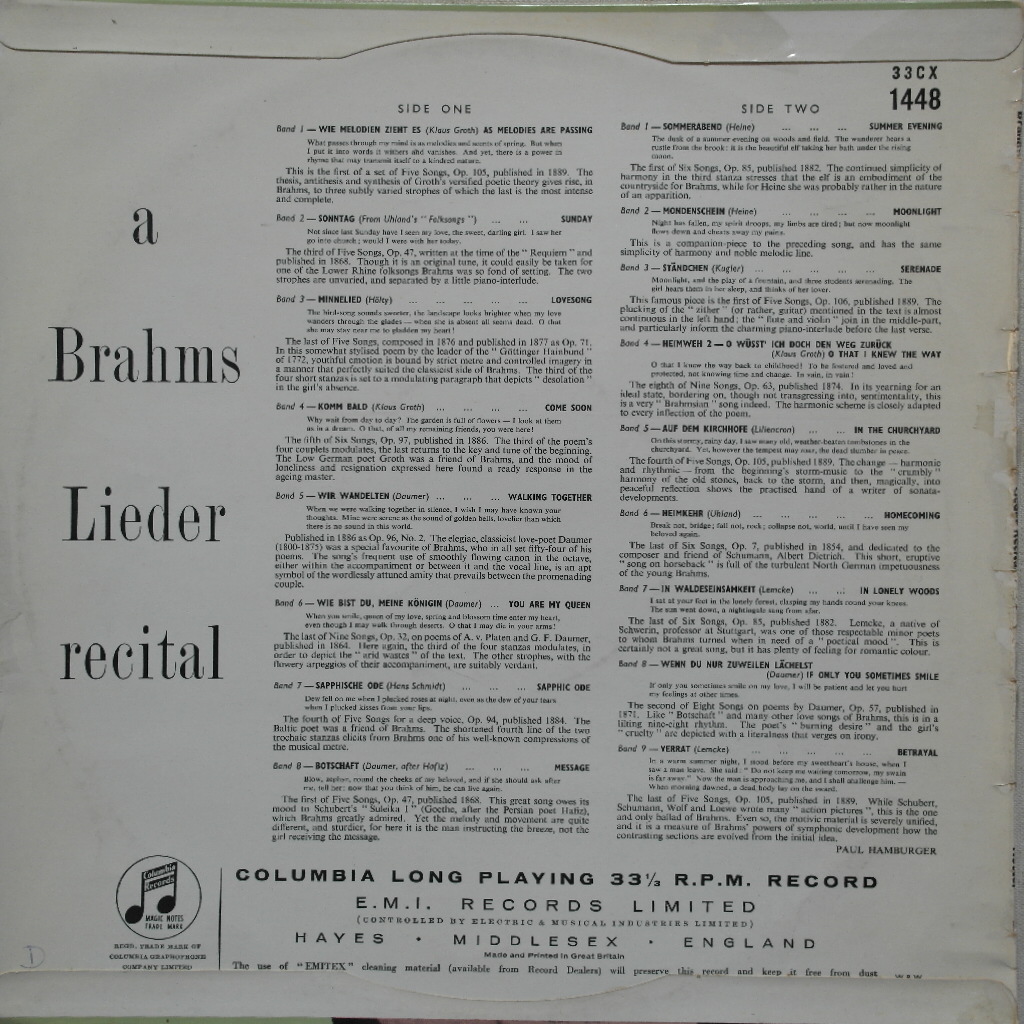 Hans Hotter & Gerald Moore, Brahms Lieder Recital
