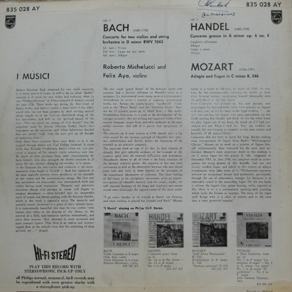 Bach : Concerto for 2 Violins / Handel : Concerto Grosso, Op.6-4 / Mozart : Adagio & Fugue in C minor