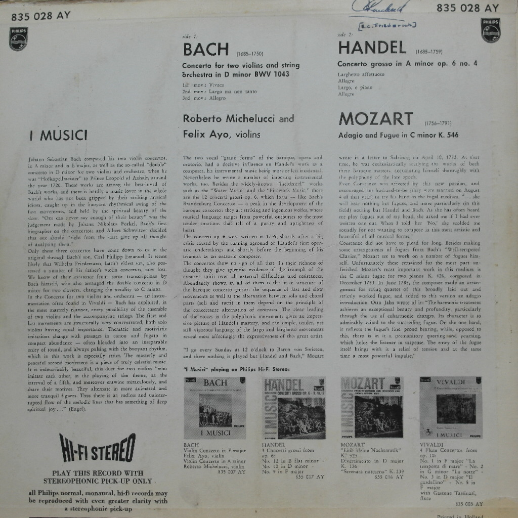 Bach : Concerto for 2 Violins / Handel : Concerto Grosso, Op.6-4 / Mozart : Adagio & Fugue in C minor