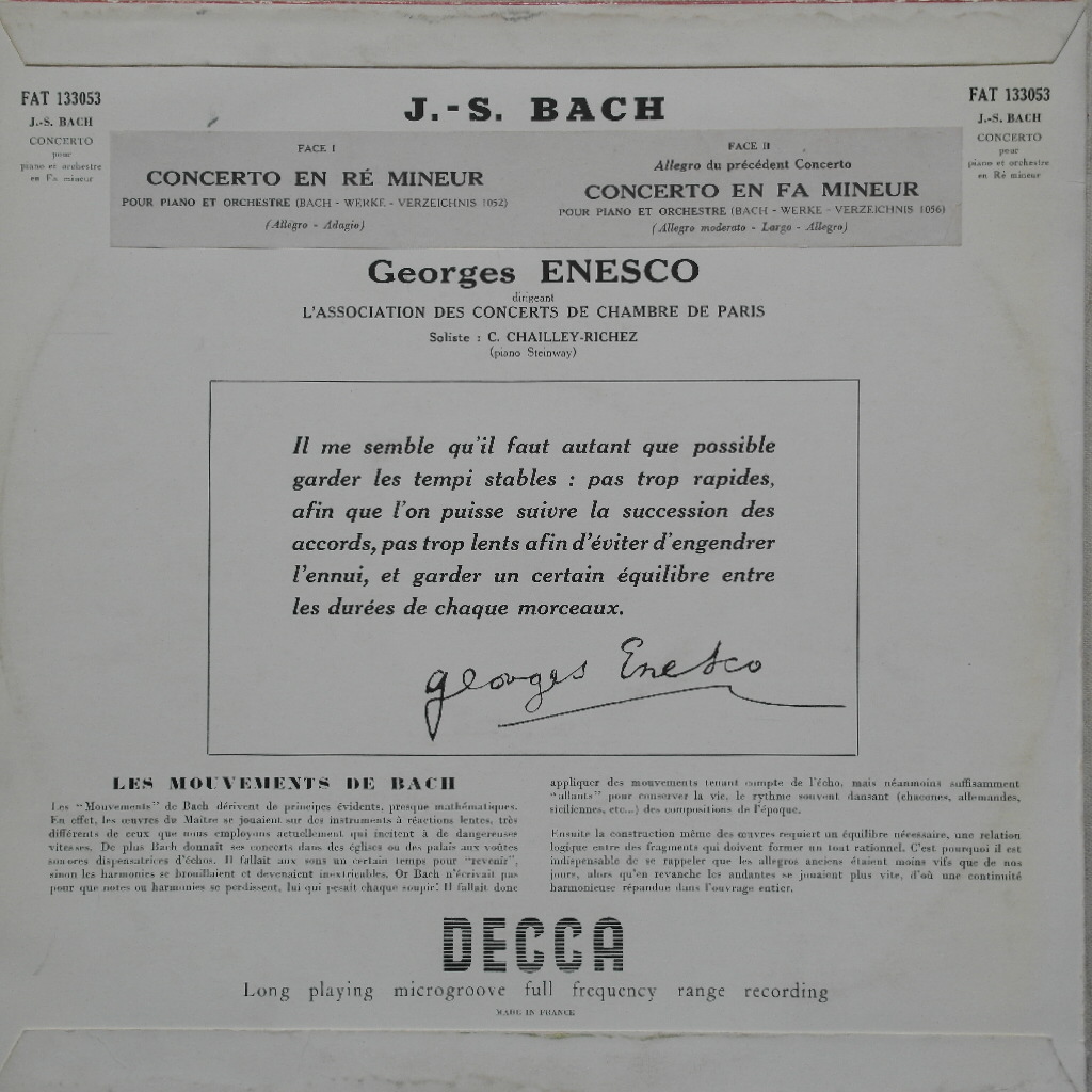 * Performer (연주가) : C. Chailley-Richez, G. Enesco, Paris Chamber Orch.