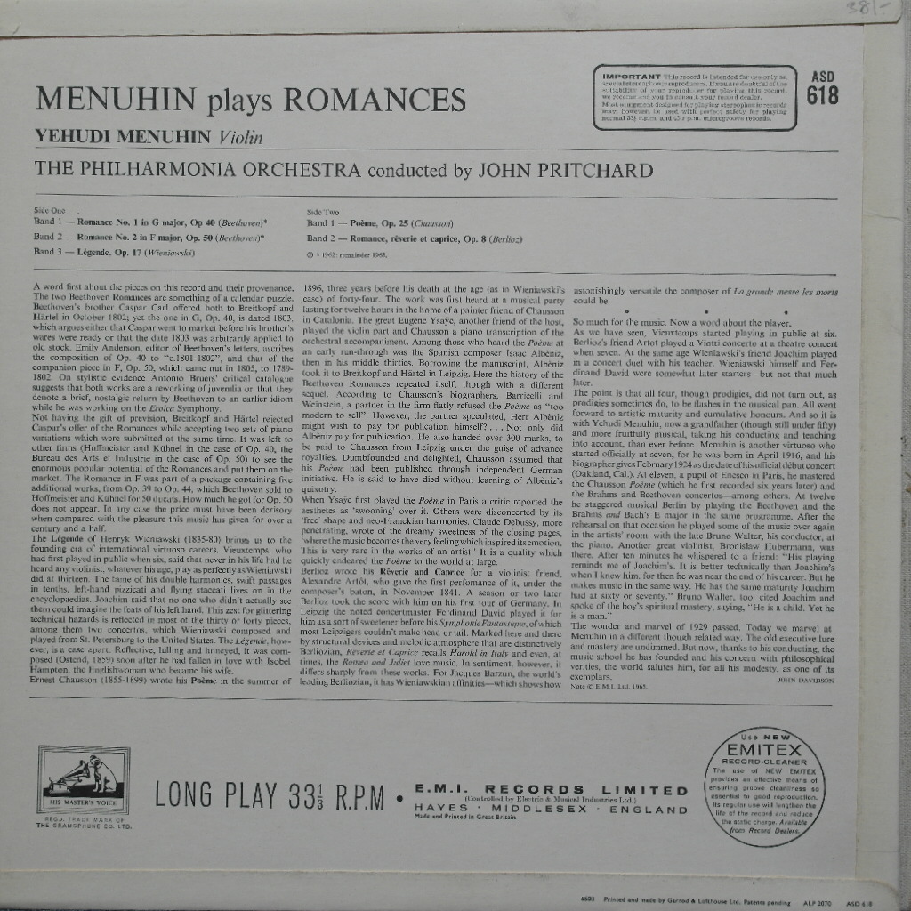 카테고리: Concerto (협주곡), EMI, Menuhin, U.K. (영국).* Serial No (상품번호) : EMI 2294