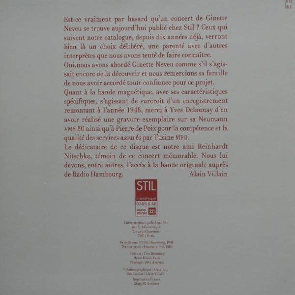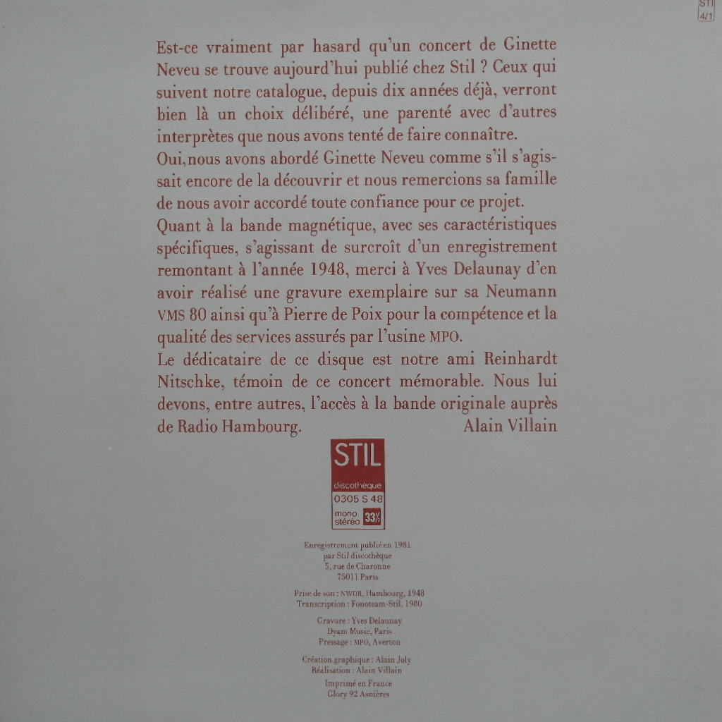 * Performer (연주가) : Ginette Neveu, H. Schmidt-Isserstedt, Hamburg Radio Sym.