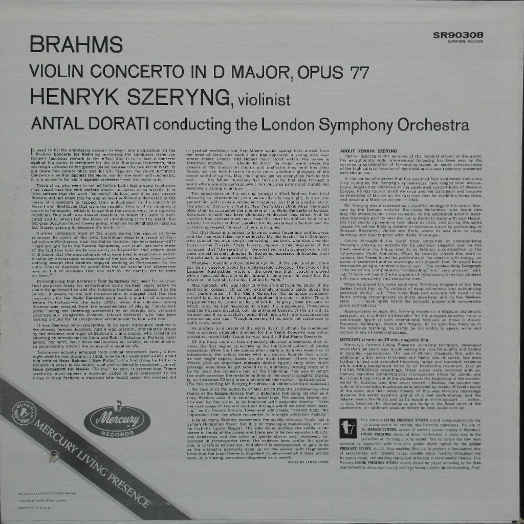 * Performer (연주가) : H. Szeryng, A. Dorati, London Sym.