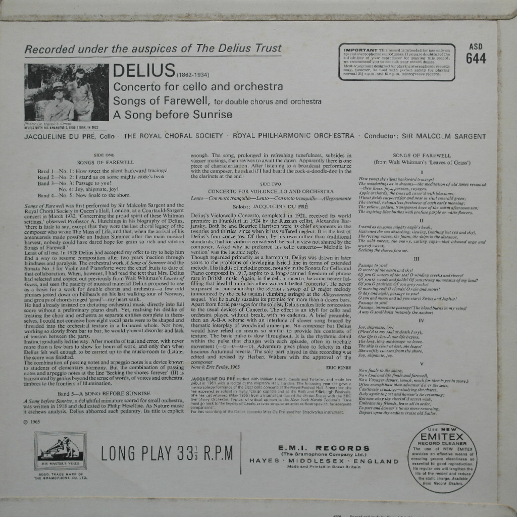 * Performer (연주가) : Jaqueline du Pre, Malcom Sargent, Royal Phil.