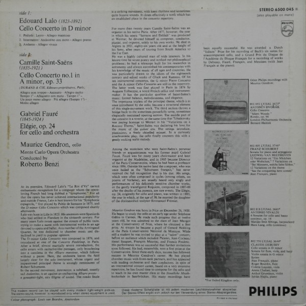 * Performer (연주가) : M. Gendron, R. Benzi, Monte Carlo National Opera Orch.