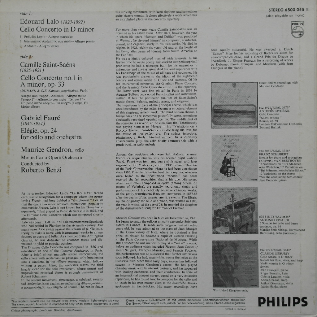 Lalo : Cello Concerto in D minor / Saint-Saens : Cello Concerto No.1 in A minor, Op.33 / Faure : Elegie, Op.24