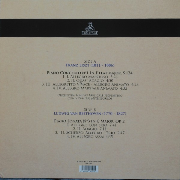 * Performer (연주가) : A. B. Michelangeli, D. Mitropoulos, Maggio Musicale Fiorentino Orch.