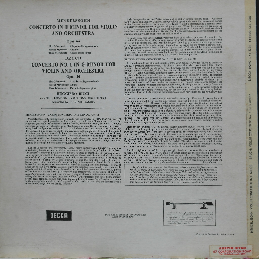 * Performer (연주가) : R. Ricci, P. Gamba, London Sym.