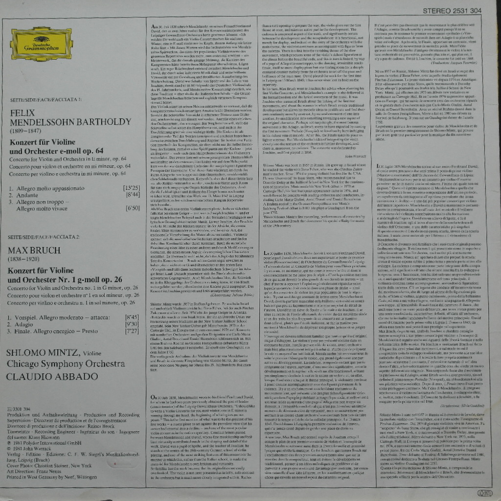* Label / No (음반사 / 음반번호) : DGG / 2531 304