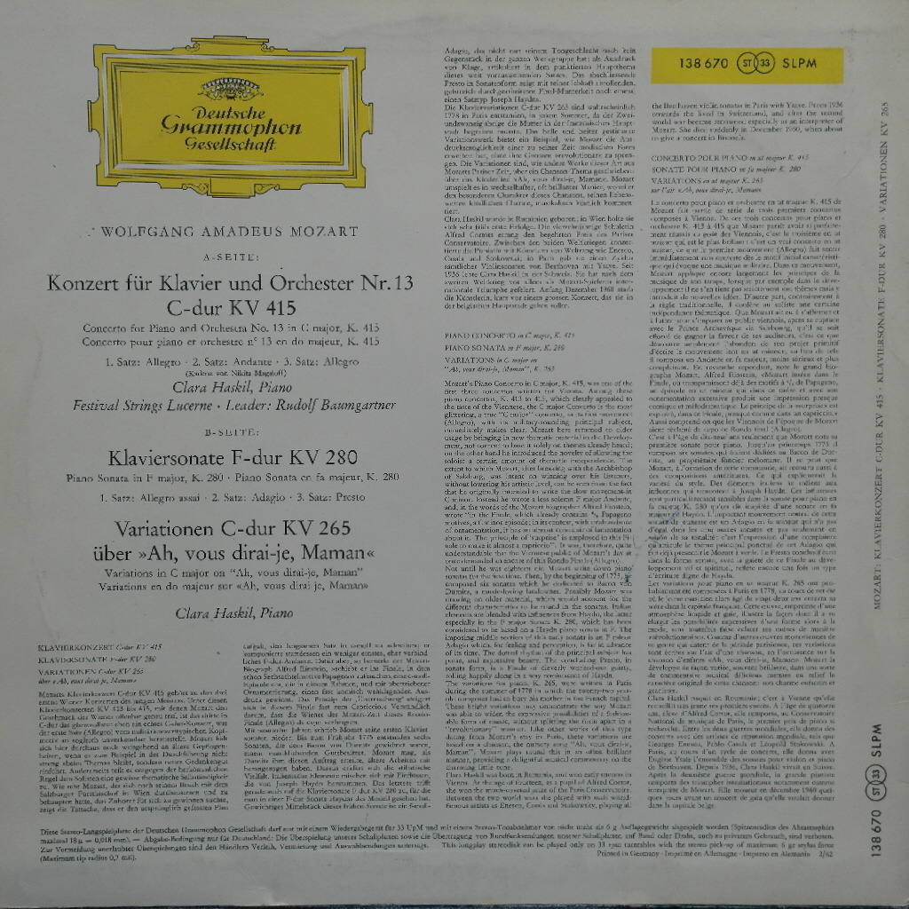 * Label / No (음반사 / 음반번호) : DGG / 138 670 SLPM