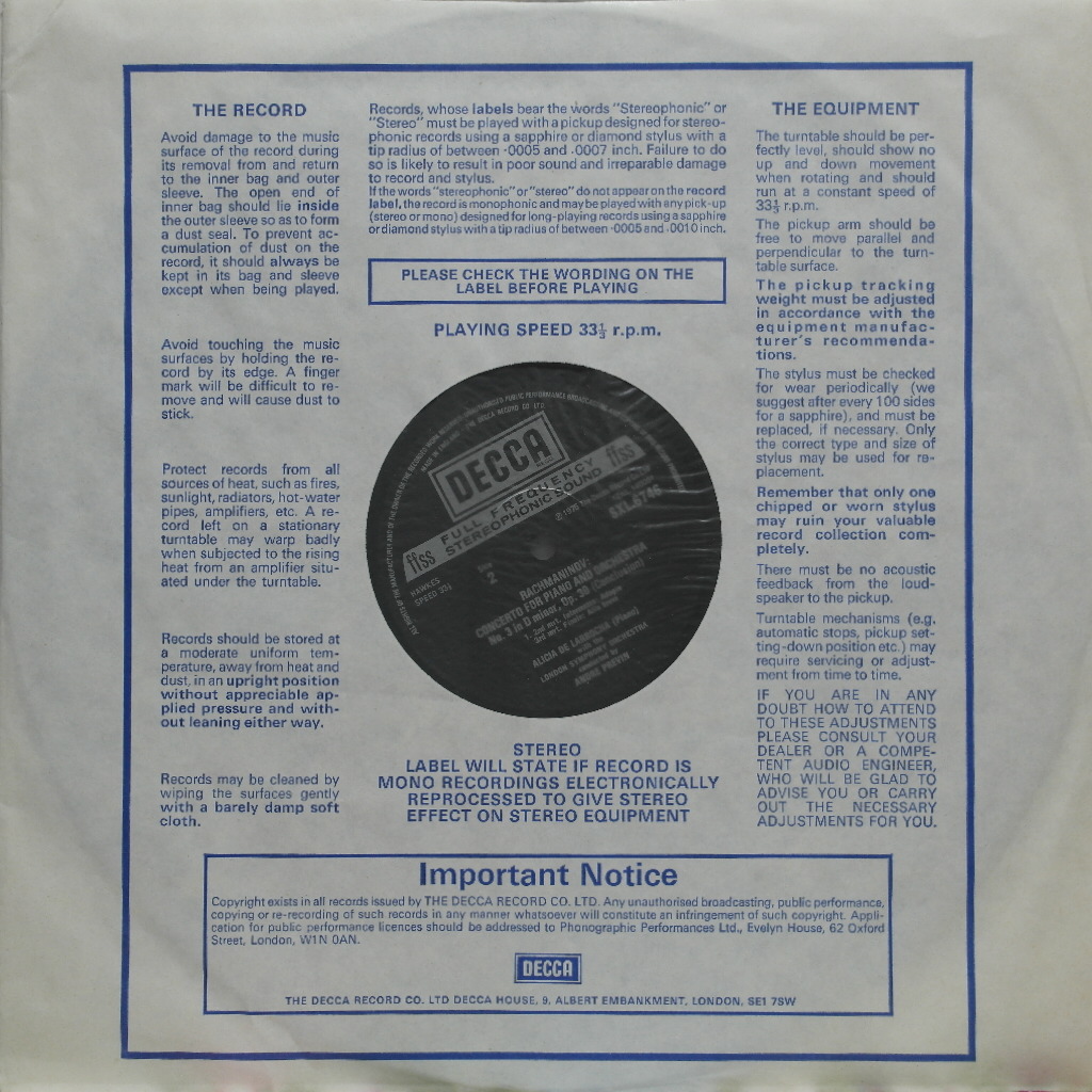 * Label / No (음반사 / 음반번호) : Decca / SXL 6746