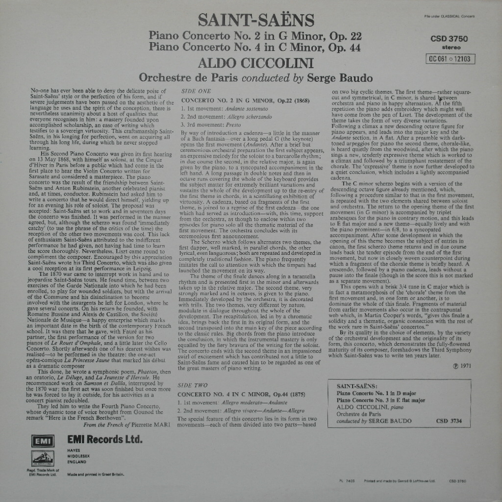 * Performer (연주가) : A. Ciccolini, S. Baudo, Paris Orch.