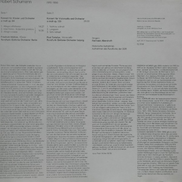 * Performer (연주가) : P. Tortelier, F. Wuhrer, H. Abendroth, Berlin Radio Sym, Leipzig Radio Sym.