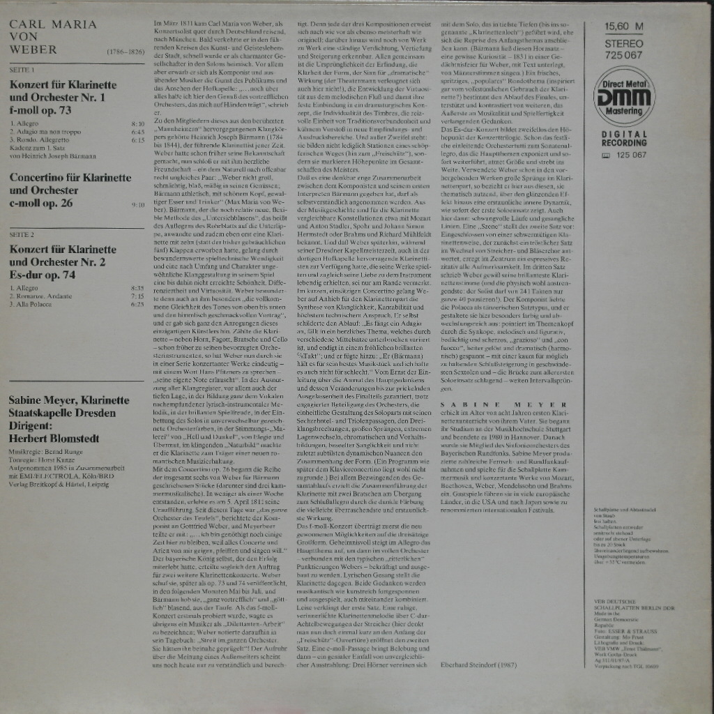 Weber : Clarinet Concerto No.1 in F minor, Op.73 / No.2 in Eb, Op.74 / Concertino for Clarinet & Orch. in C minor, Op.26