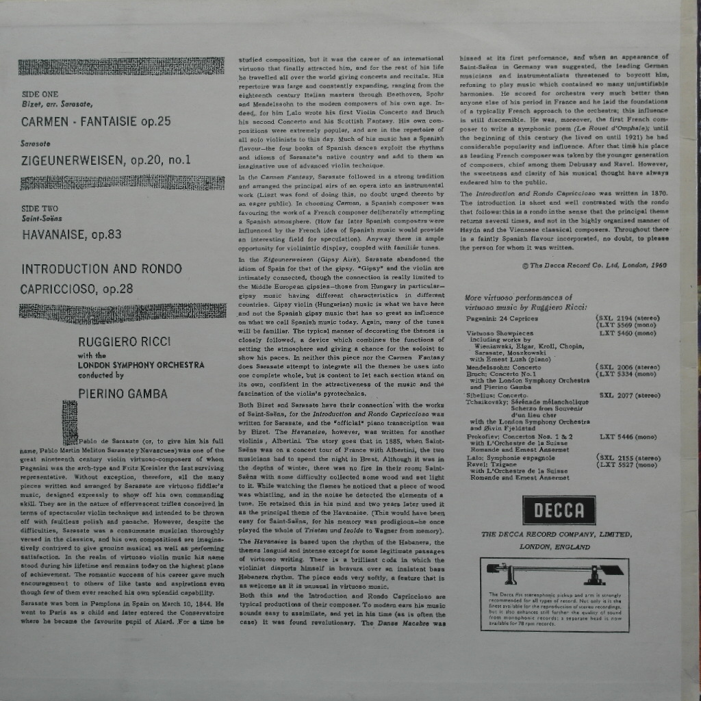 Bizet-Sarasate : Carmen Fantasie / Sarasate : Zigeunerweisen / Saint-Saens : Havanaise, Introduction & Rondo capriccioso
