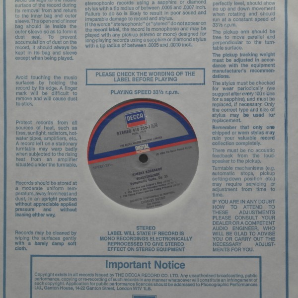 * Label / No (음반사 / 음반번호) : Decca / 410 253-1