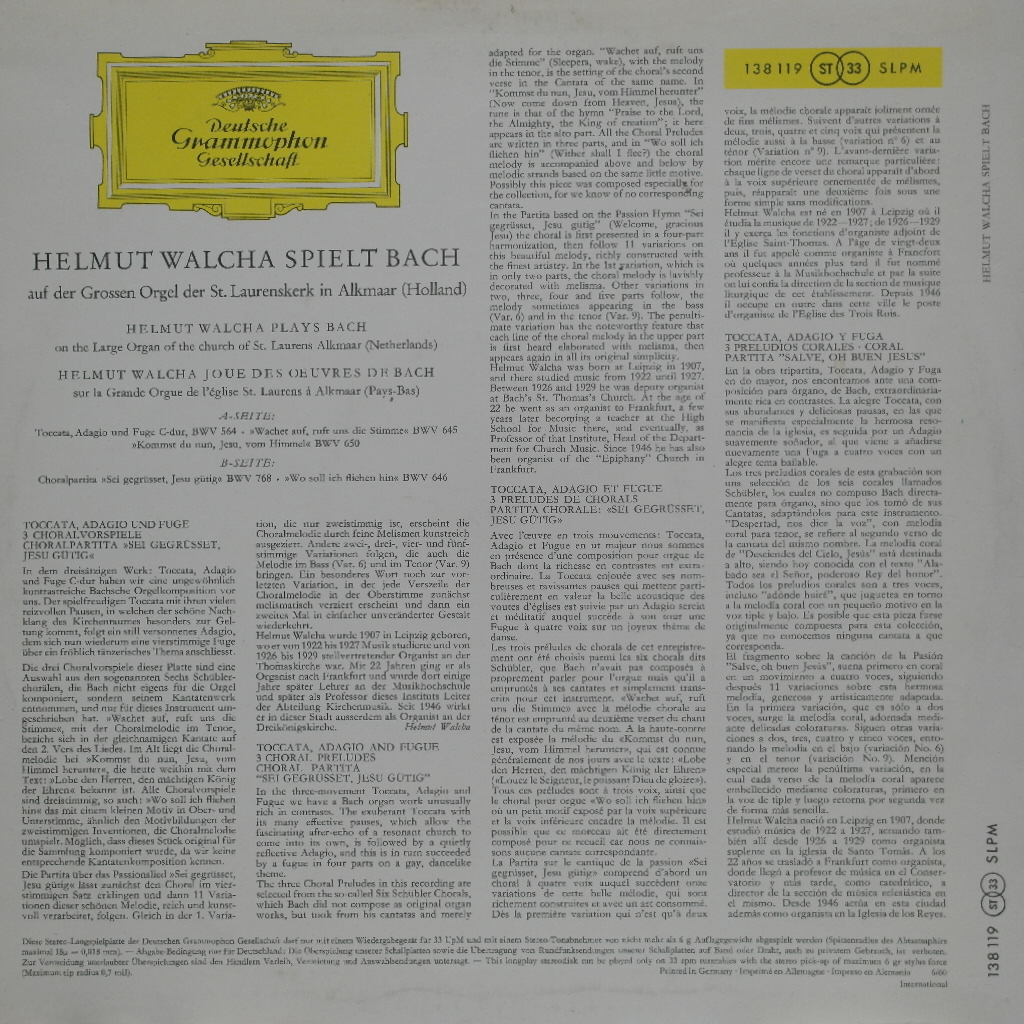 * Label / No (음반사 / 음반번호) : DGG / 138 119 SLPM