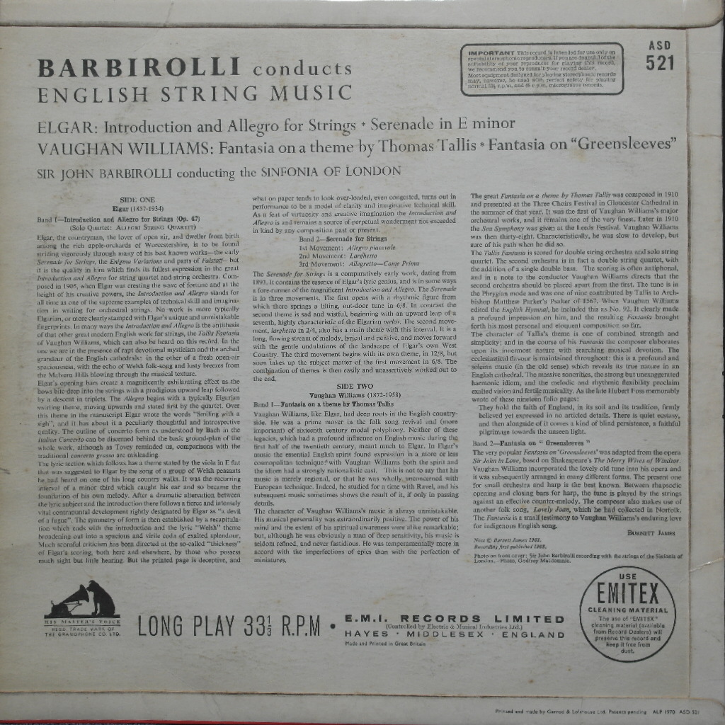 * Performer (연주가) : J. Barbirolli, Sinfonia of London