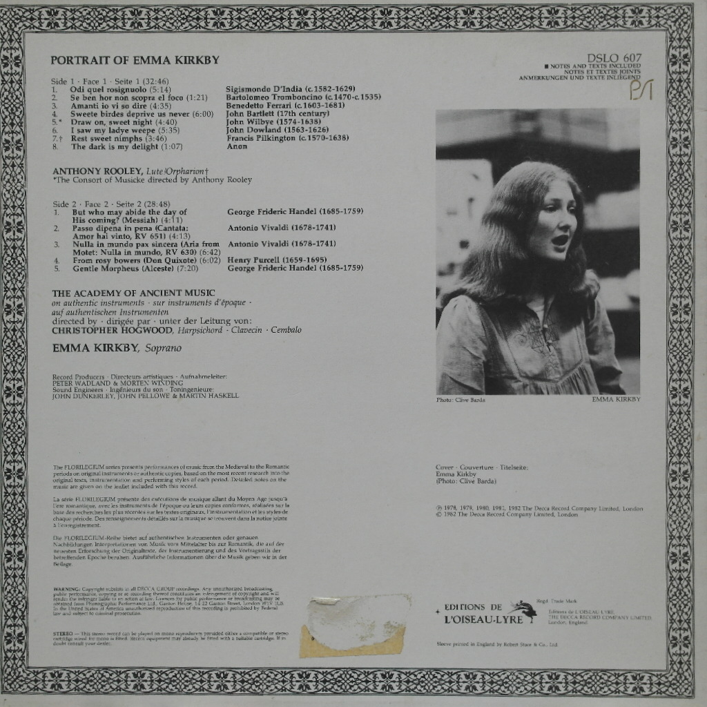 * Label / No (음반사 / 음반번호) : L’Oiseau Lyre / DSLO 607
