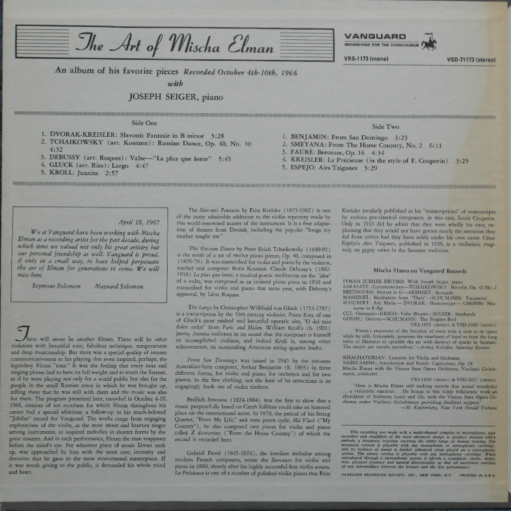 * Performer (연주가) : Mischa Elman, J. Seiger