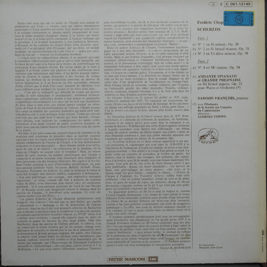 * 기타 음반정보 : 1960년 recording (스케르초)으로 10인치 음반으로 발매. 1973년 프랑스 EMI (pathe marconi)에서 reissue한 음반, only French pressing