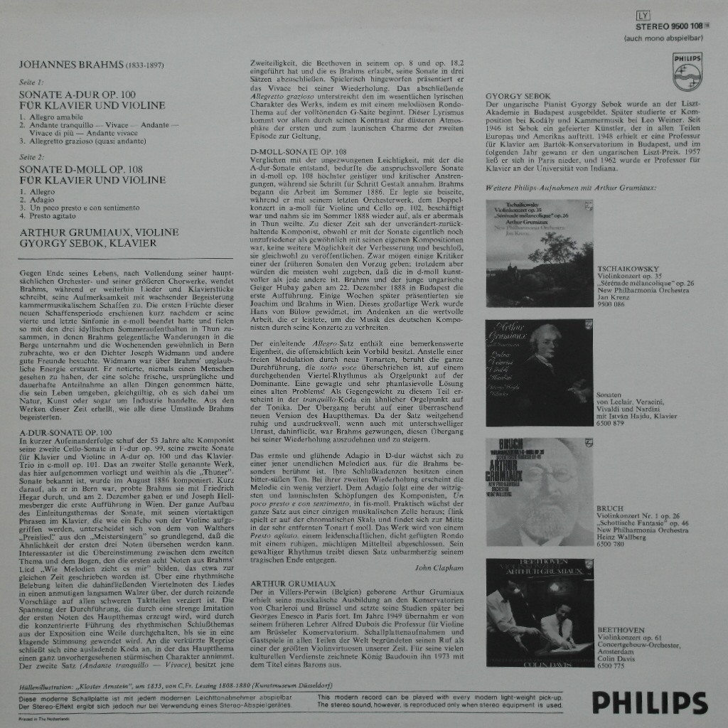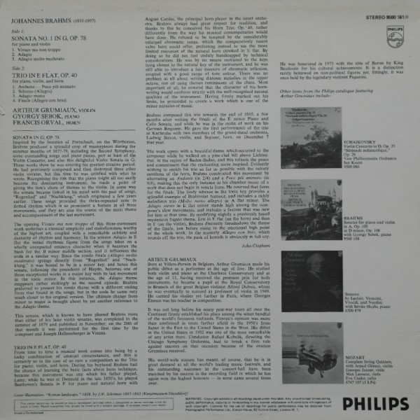 Brahms : Violin Sonata No.1, No.2 & No.3 (Complete) / Trio for Violin, Piano & Horn – 2LP set