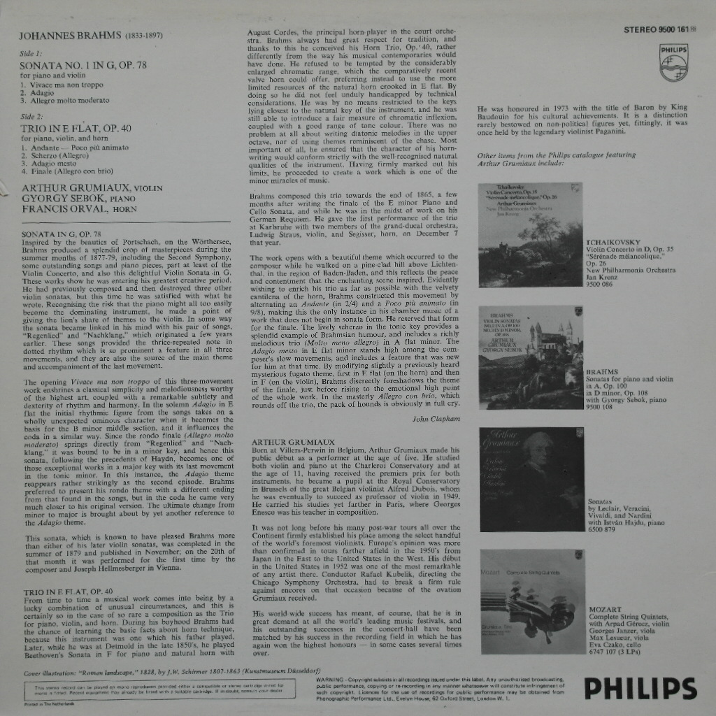 * Performer (연주가) : A. Grumiaux, G. Sebok, F. Orval