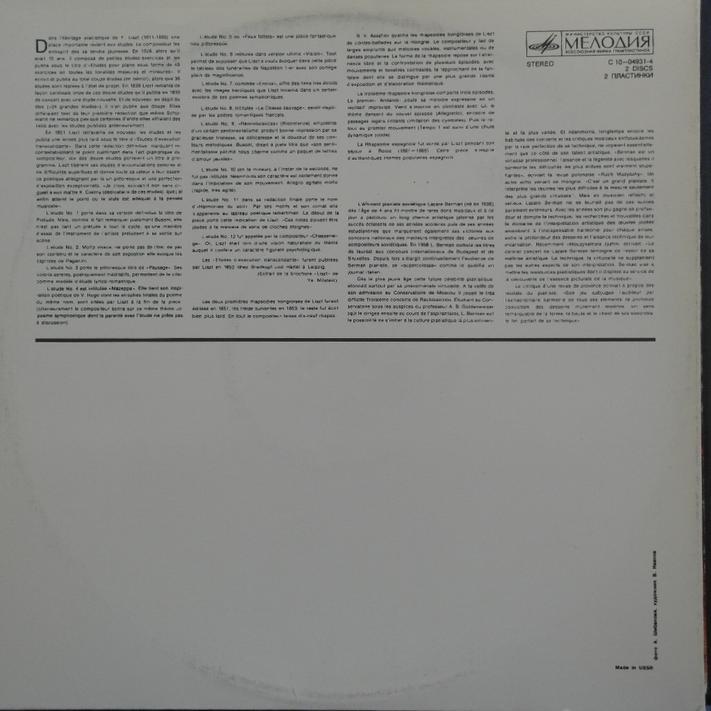 * Label / No (음반사 / 음반번호) : Melodiya / C 10-04931-4