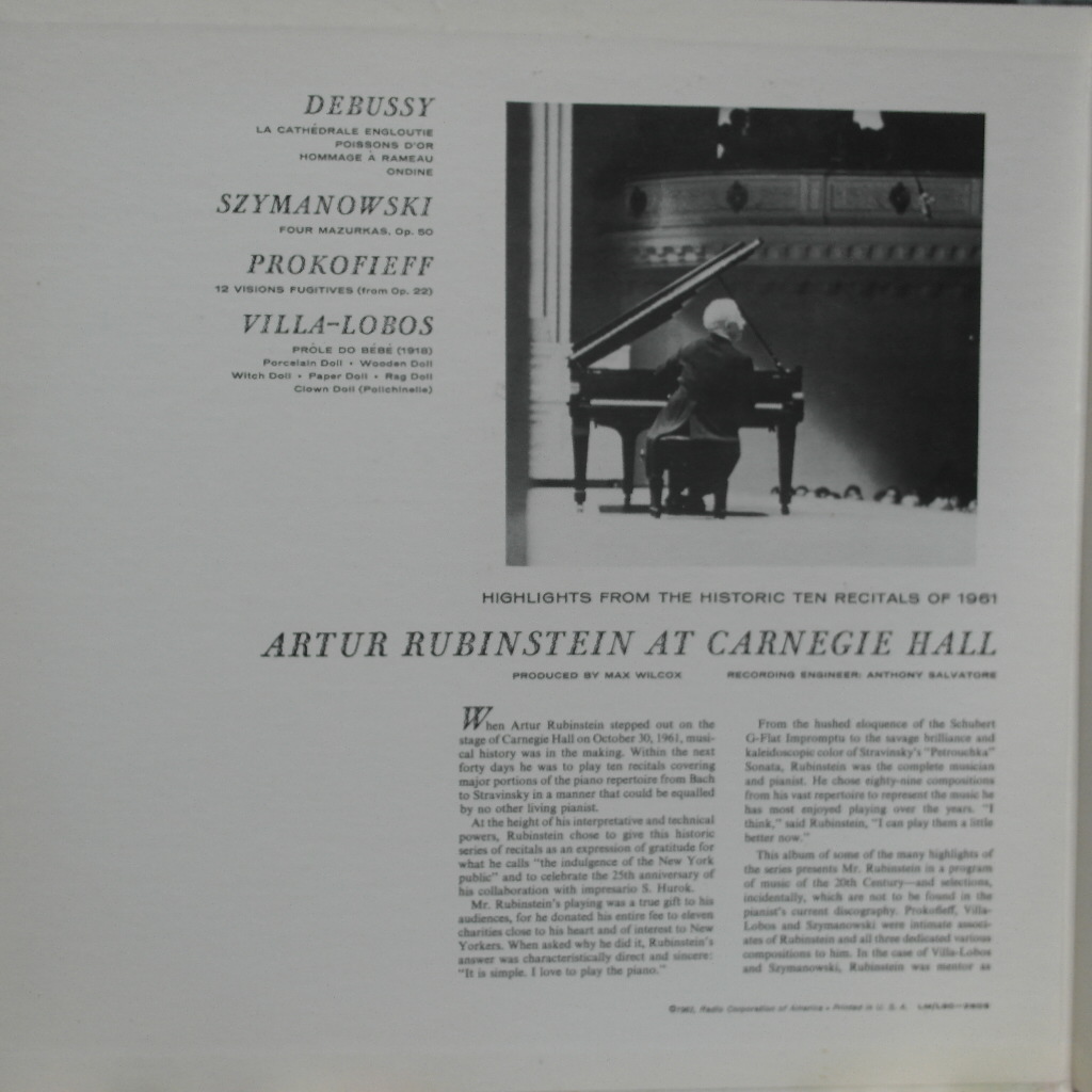 Rubinstein At Carnegie Hall (Live recording, Debussy, Szymanowski, Prokofiev, Villa-Lobos)
